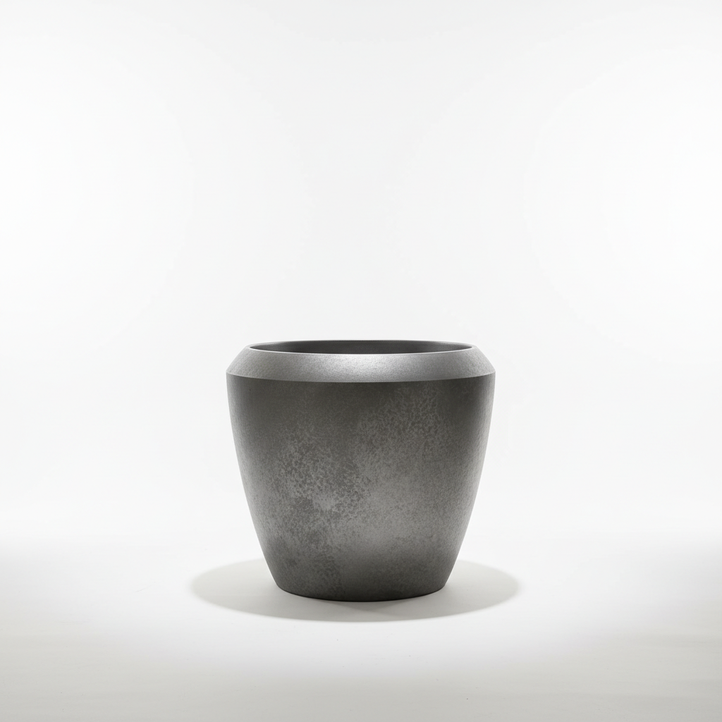 Vazo dekorative e madhe në ngjyrë Antique Pewter me dizajn modern të rrumbullakët të ngushtuar, ideale për zbukurimin e ambienteve të brendshme ose për përdorim si vazo bimore. Materiali plastik i jep pamje metalike elegante duke qenë njëkohësisht i lehtë për t’u lëvizur.