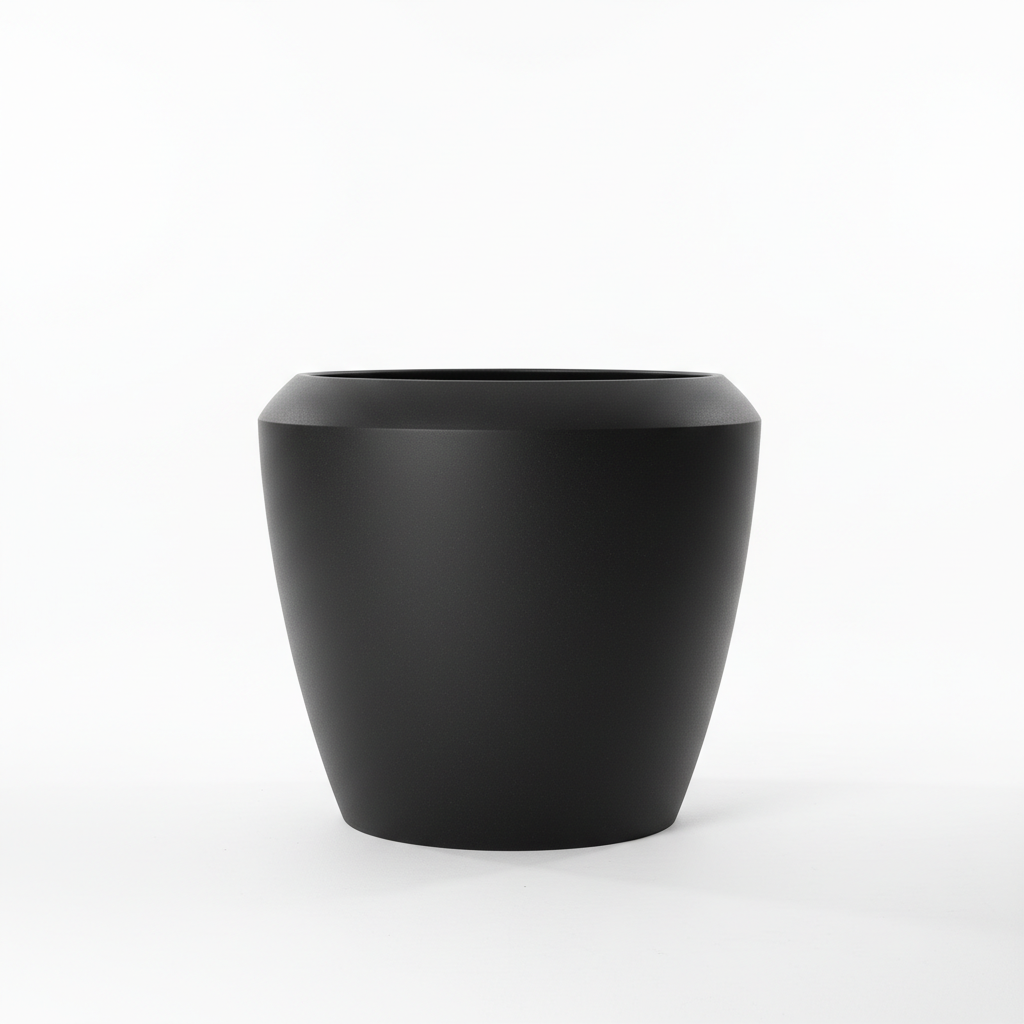 Vazo dekorative plastike në ngjyrë Coni Black mat, me përmasa të mëdha që e bëjnë ideale për dysheme ose si mbajtëse bimësh. Dizajni modern minimalist përshtatet lehtësisht me çdo ambient shtëpie apo zyre.
