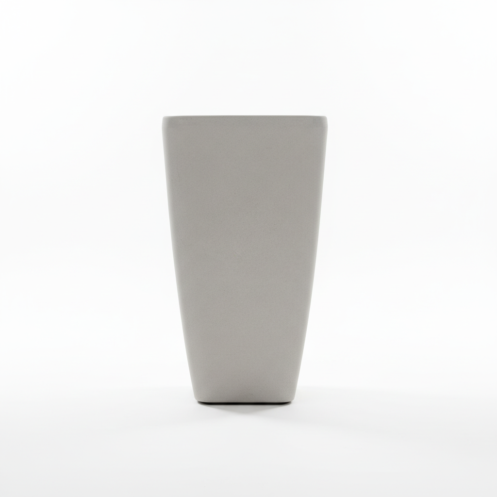 Vazo dekorative me ngjyrë chalk beige dhe formë të lartë drejtkëndore të ngushtuar, e përshtatshme si aksesor modern për brenda ose si mbajtëse bimësh. Struktura plastike i jep një pamje të pastër dhe neutrale që kombinohet lehtë me çdo stil.