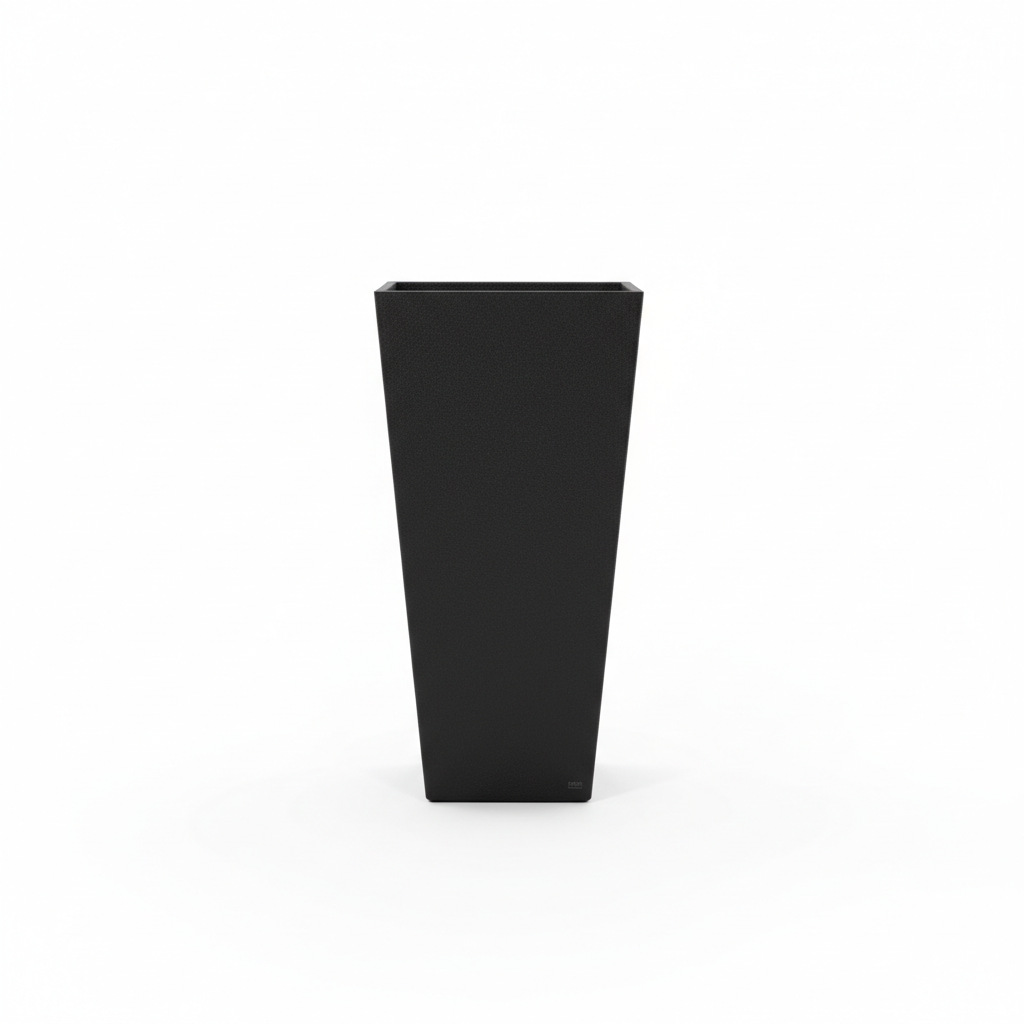 Vazo dekorative me ngjyrë charcoal black dhe formë të lartë katrore, ideale për vendosjen e luleve dhe bimëve në ambiente të brendshme. Dizajni i thjeshtë dhe modern e bën një element elegant dekorimi për çdo kënd të shtëpisë ose zyrës.