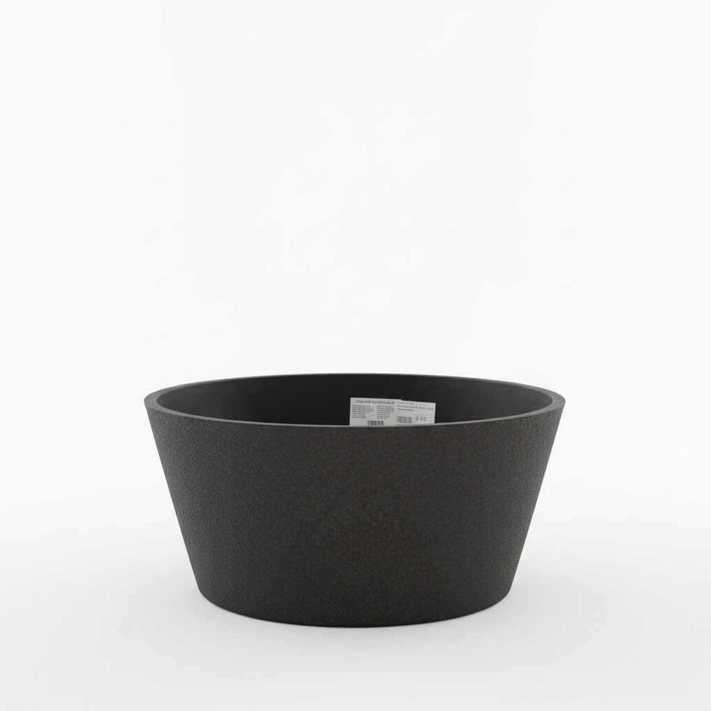 Kjo vazo dekorative në ngjyrë charcoal black sjell një pamje moderne dhe të pastër për çdo kënd të shtëpisë apo zyrës. Forma e saj e ulët, si tas, e bën ideale për kompozime dekorative me bimë apo elemente zbukuruese.