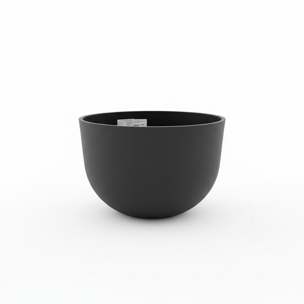Vazo dekorative me madhësi mesatare në ngjyrë charcoal black, me formë të rrumbullakët tas dhe përmasa 45×45×30 cm, ideale për bimë dhe dekor modern.