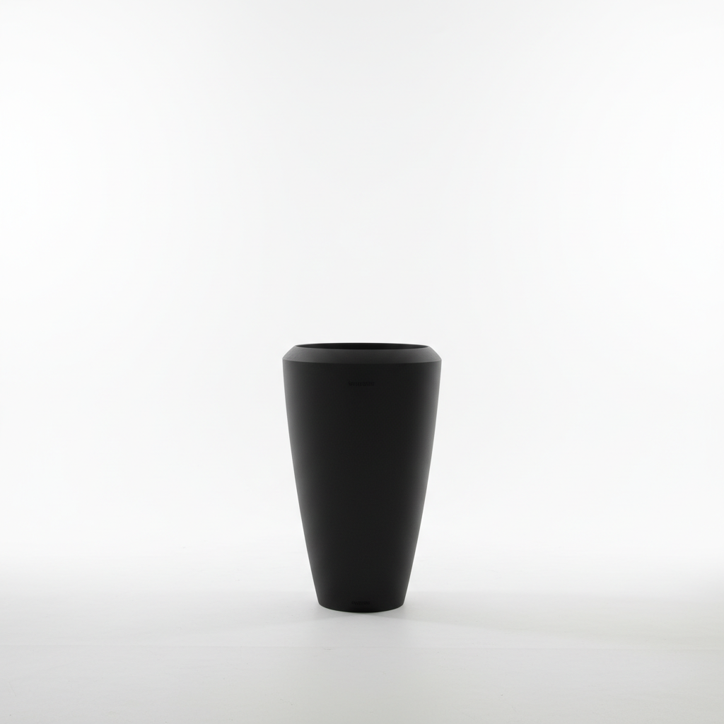 Vazo dekorative plastike me ngjyrë coal black dhe dimensione 55 × 55 × 86.3 cm, ideale për të ekspozuar bimë dhe për të shtuar stil modern në ambientin tuaj.