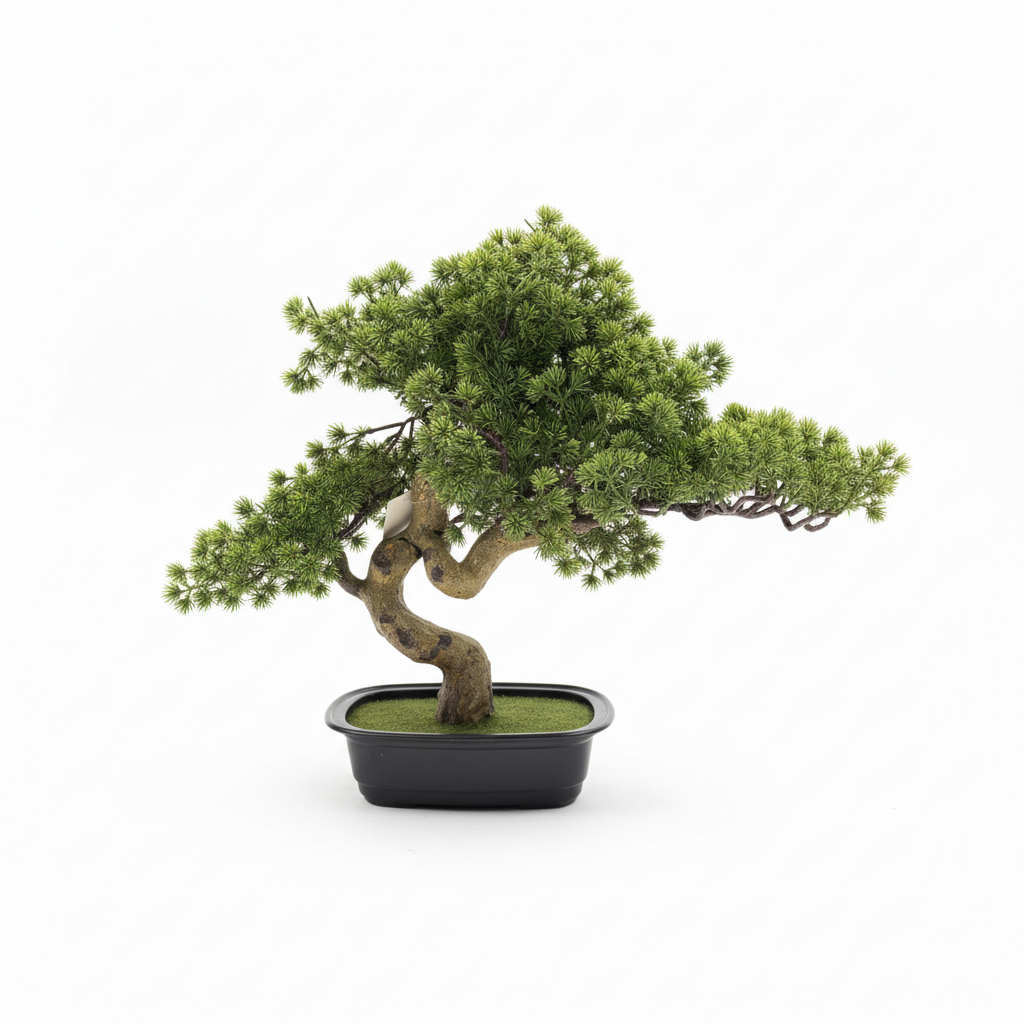 Pema dekorative bonsai artificiale sjell pamjen e gjelbërimit natyral në ambientin tuaj të brendshëm, pa nevojë për mirëmbajtje. Trungu i harkuar dhe kurorat e dendura krijojnë një pikë fokale elegante për çdo hapësirë.