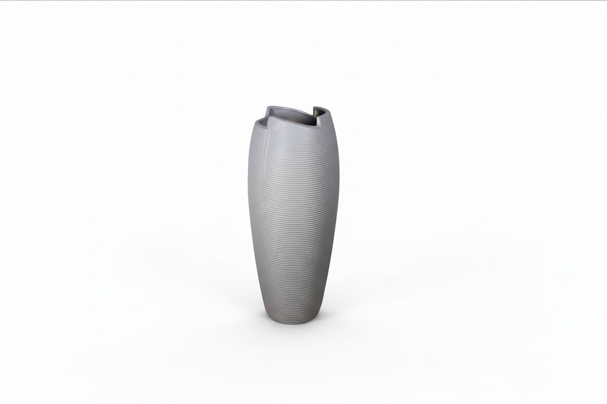 Tekstura me vija të imëta krijon një efekt vizual minimalist dhe modern, ndërsa ngjyra neutrale e bën të lehtë për t’u kombinuar me stile të ndryshme arredimi. Mund të përdoret me lule natyrale, artificiale ose si element dekorativ më vete.