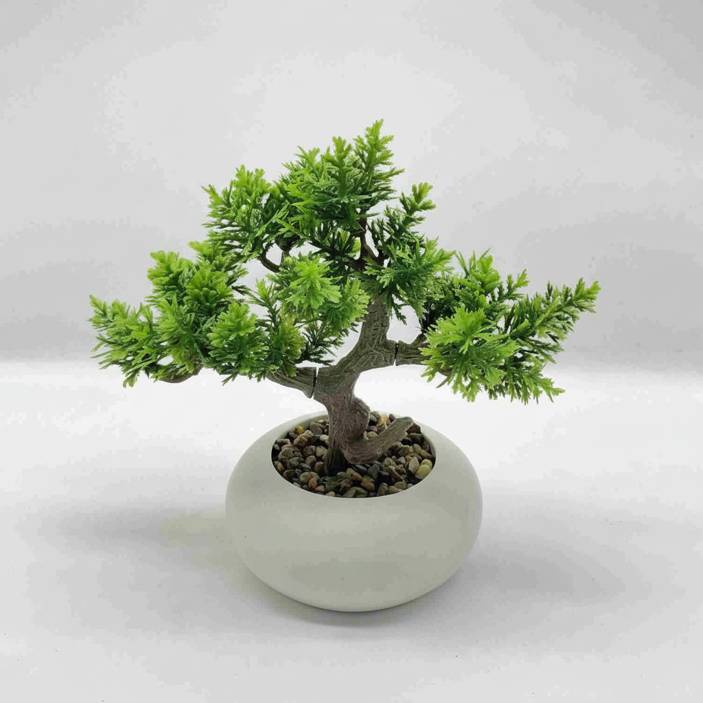 Ky bonsai artificial sjell gjelbërim të gjallë dhe stil minimalist në çdo ambient të brendshëm, pa nevojë për mirëmbajtje ose ujitje.
