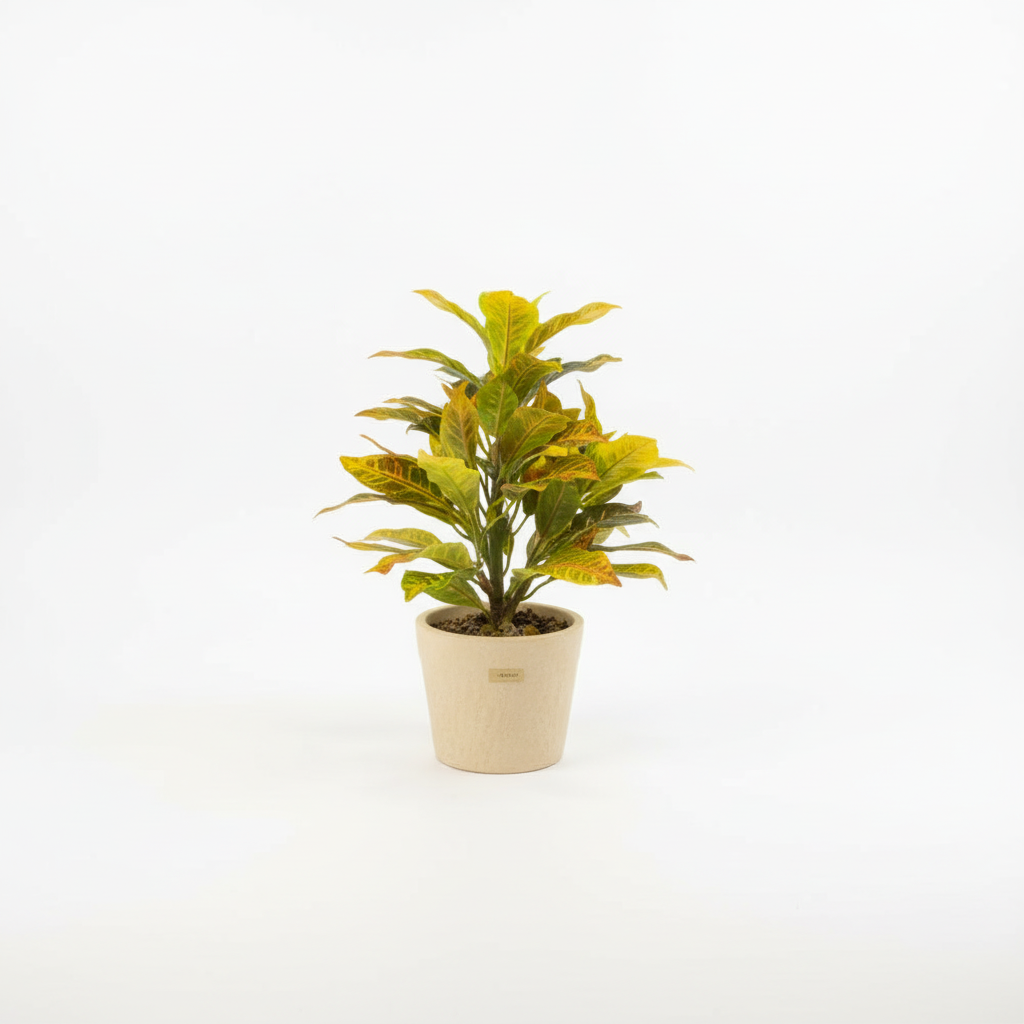 Bimë artificiale dekorative në vazo neutrale, ideale për zbukurimin e ambienteve të brendshme. Kombinimi i gjetheve në nuanca të verdha dhe jeshile sjell ngrohtësi dhe gjallëri në çdo tavolinë apo raft.